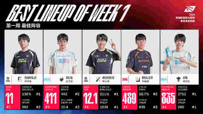 1月29日,英雄联盟赛事官方微博发布2024LPL春季赛第一周最佳阵容: