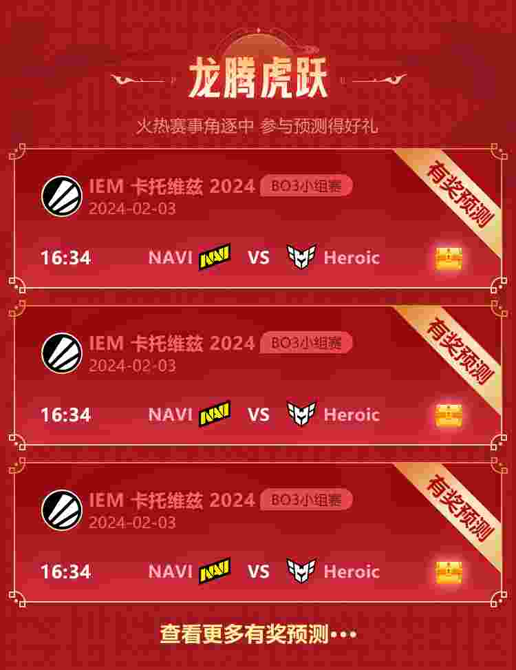 春节恰逢IEM卡托维兹火热开打时,我们的有奖预测活动也在火热的开展中~观看比赛的同时也不要忘记支持你看好的队伍和选手哦~做出选择提交答案,猜对即可赢取精选好礼!新年猜一猜,荷包圆滚滚~