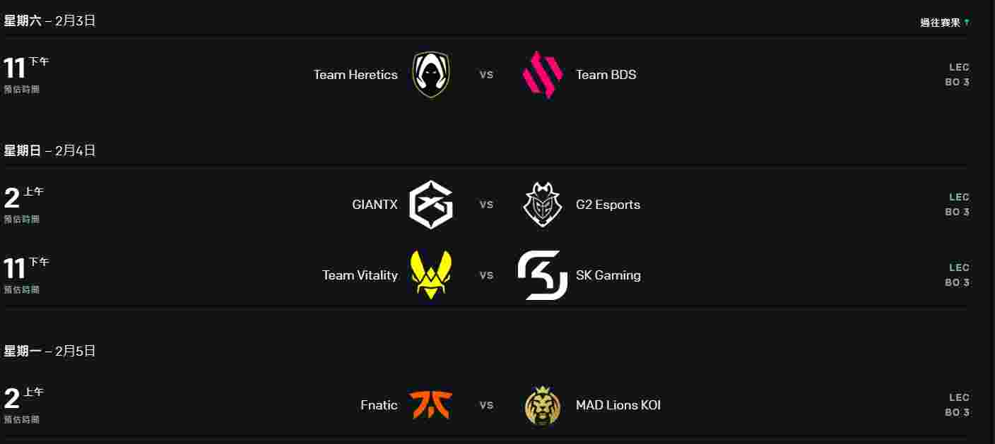 随后G2和BDS在对手选择中分别挑选了积分靠后的GX和TH作为胜者组第一轮的对手,2024LEC冬季赛季后赛的对阵表也就此出炉: