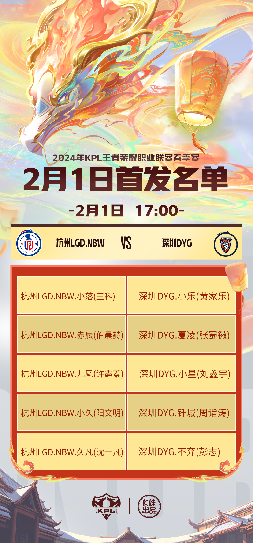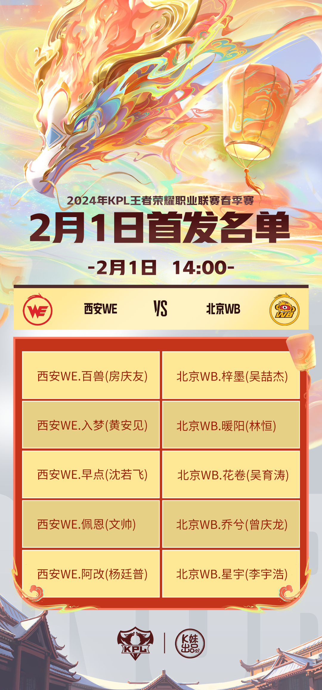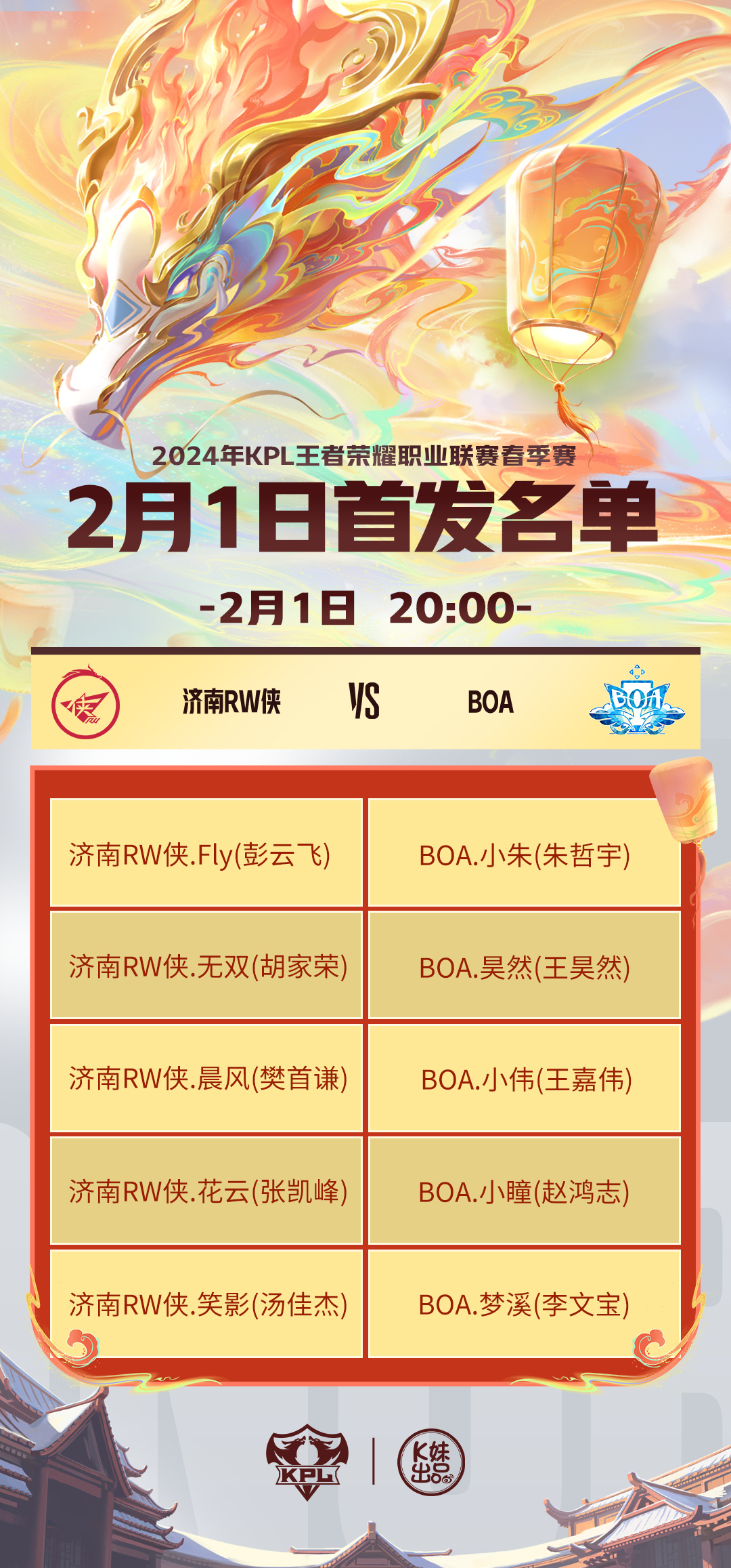2024KPL春季赛常规赛第一轮W1D2【首发名单】送达!