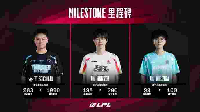 2月1日,2024 LPL春季赛常规赛W2D4即将开始,英雄联盟赛事数据官博发布了今日的数据里程碑预告:
