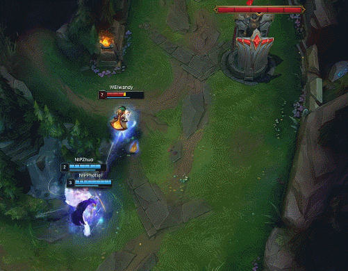 第15分钟,双方在下路对峙拉扯,大树试图W控住猪妹开团,但被猪妹闪现拉开带回反倒送出了自己的人头,NIP趁势追击,集火成功完成了对蒙多的击杀。