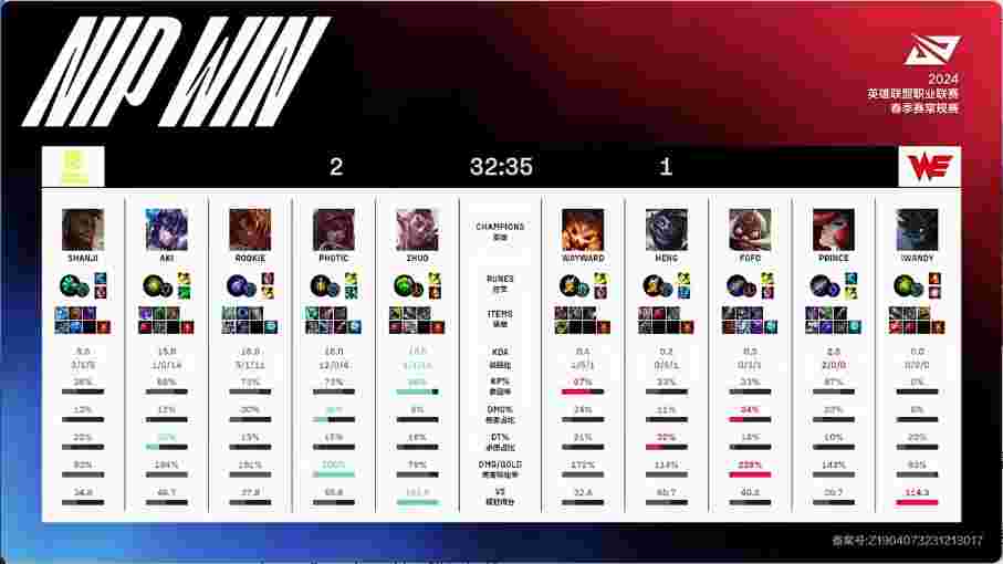 北京时间2月2日,LPL春季赛第二周第五日第一场,由NIP对阵WE。