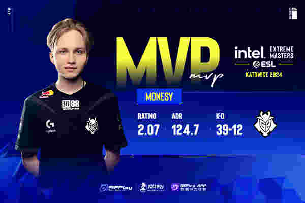 Ilya Osipov | m0NESY拿到惊人的39-12K/D、124.7ADR、2.07Rating,帮助G2逆风翻盘赢下图一。