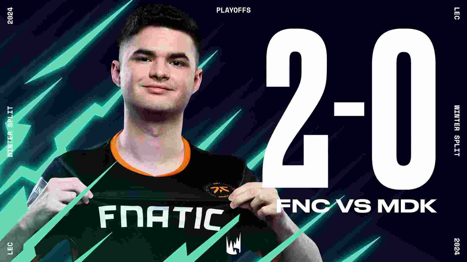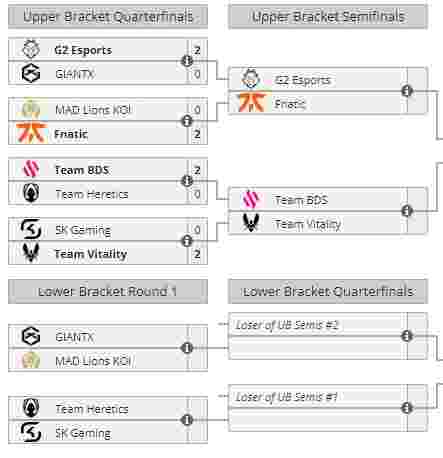 FNC和VIT在今早完成了下克上,分别击败了积分排名3/4的MDK和SK挺进了胜者组第二轮,他们将在明天早上分别交手G2和BDS