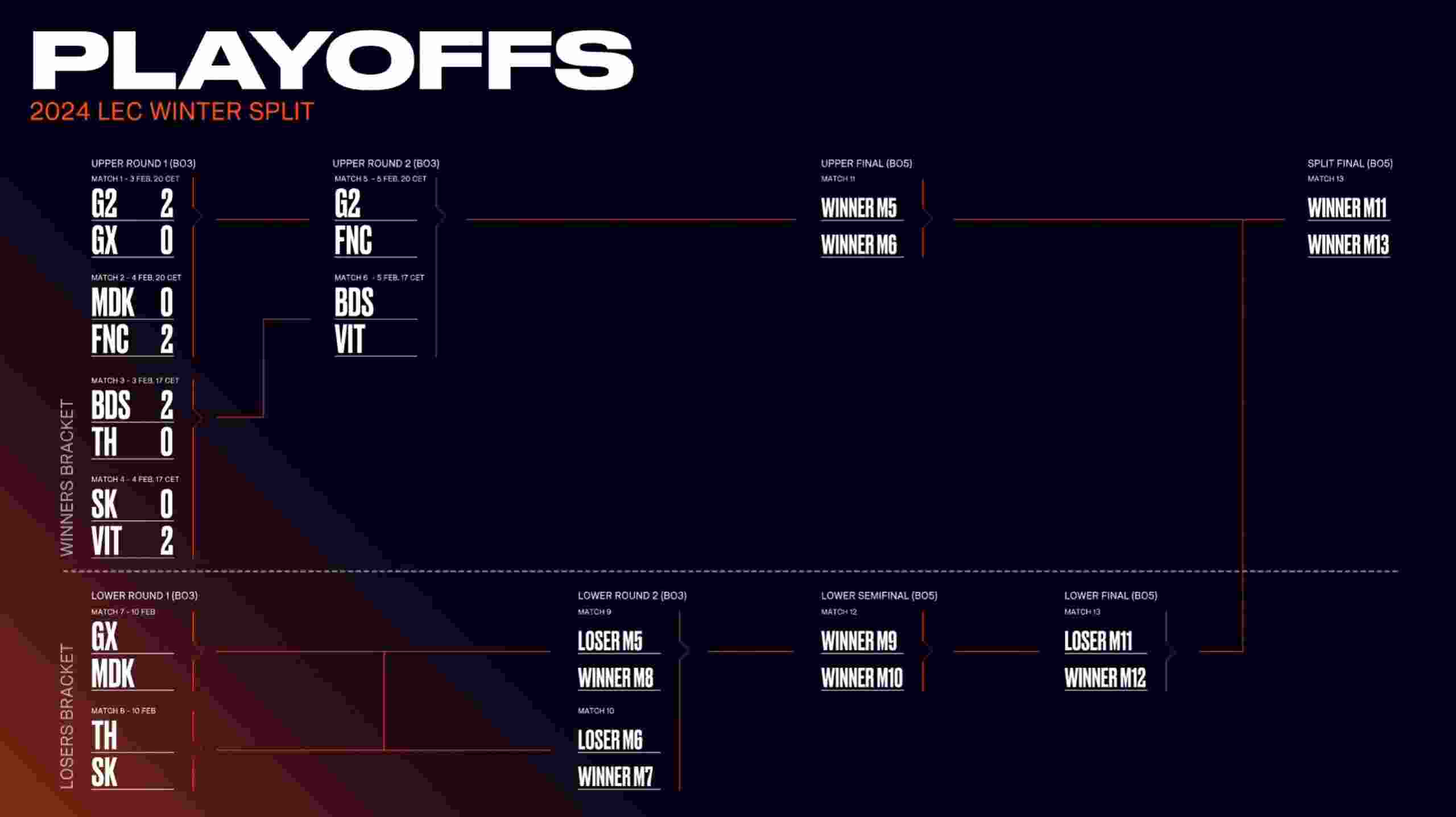 2月5日凌晨,2024LEC冬季赛结束了季后赛第一轮的比赛: