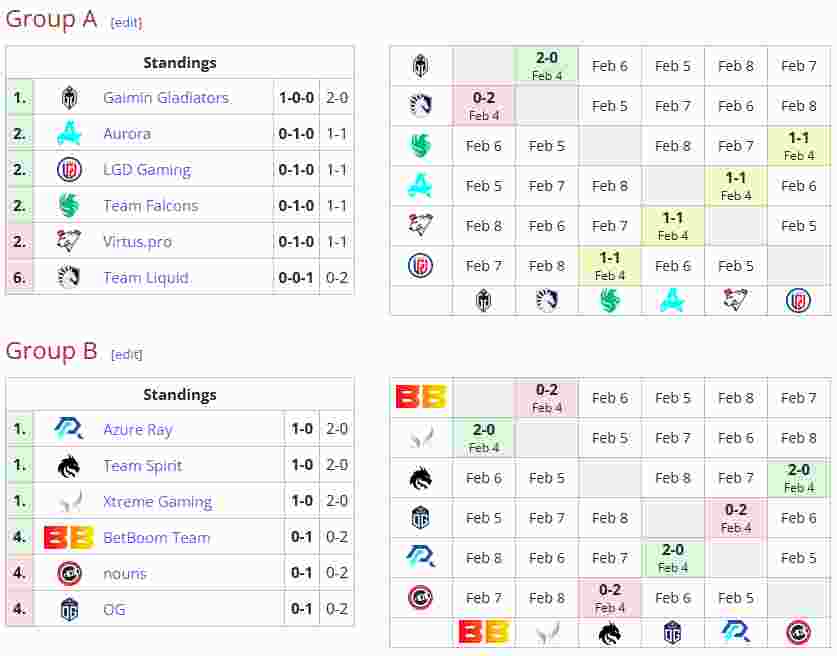 在经过一天激烈的对决中,首日中国各战队成绩优秀。LGD以0-1-0的战绩并列A组第二,AR、XG以1-0-0的战绩拔得头筹: