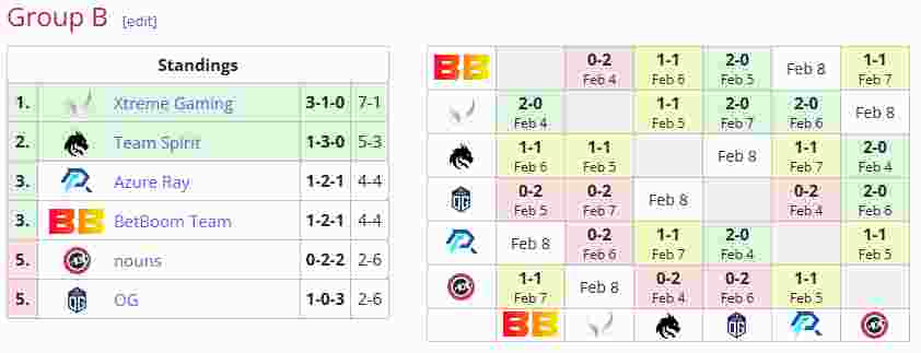 而在最后一轮比赛中,B组中的TSpirit 1-1战平AR,同时Liquid 1-1战平Aurora: