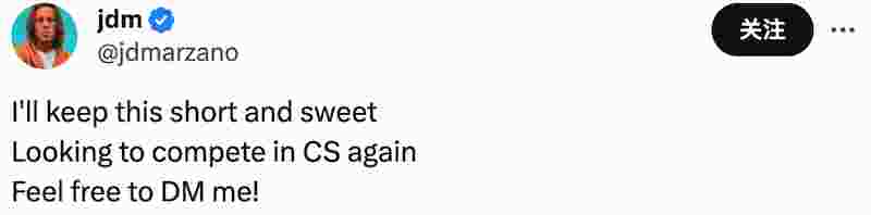 Josh Marzano | jdm64在个人推特上发文:期待在CS中再度征战,有意请私信!
