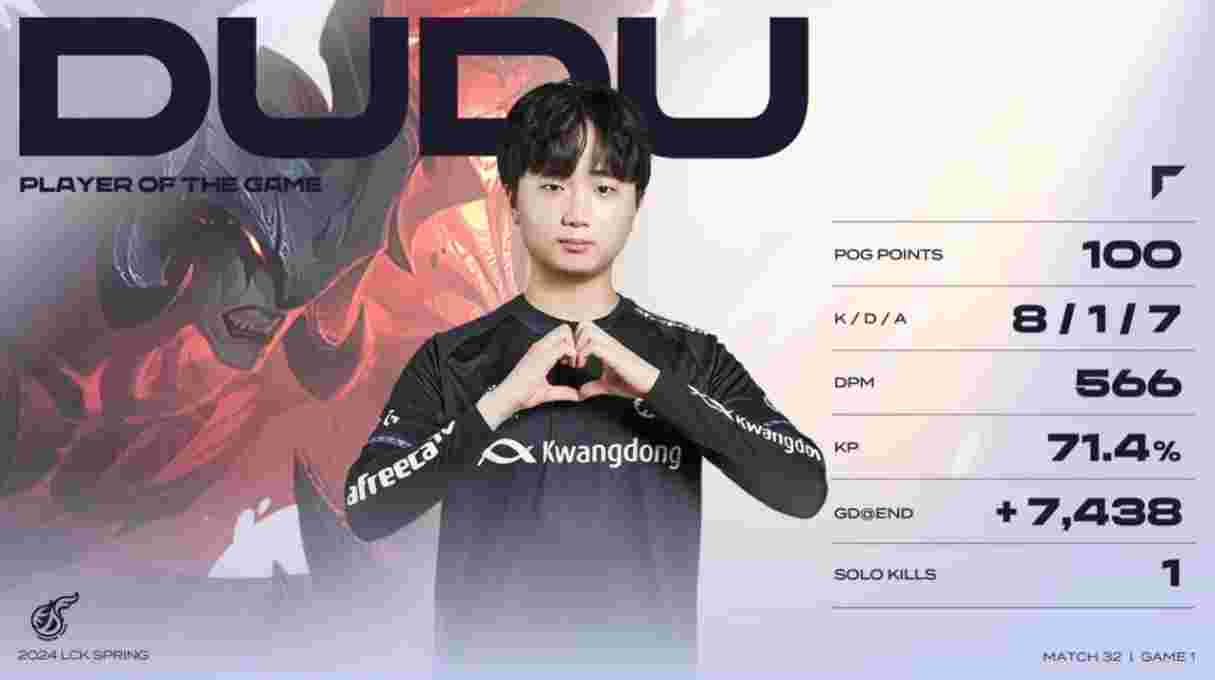 比赛前期KDF对线打出优势,DuDu剑魔线上轻松单杀Rascal卡尔玛。