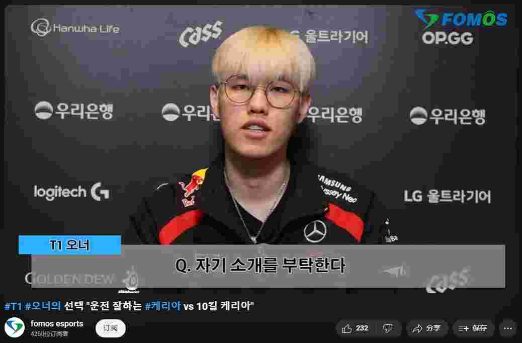 2月15日,2024LCK春季赛常规赛上,T1以2比0横扫DK,赛后打野Oner接受了韩媒Fomos的专访: