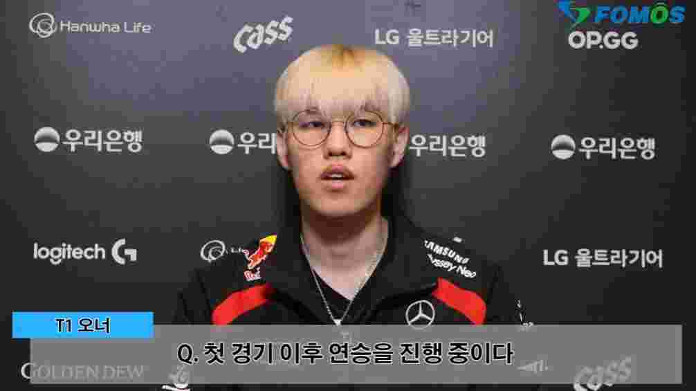 Oner:嗯毕竟是竞技体育,连胜越多,氛围就会越好,我认为这是一个非常好的信号。我希望我们能保持这种氛围,继续连胜下去。