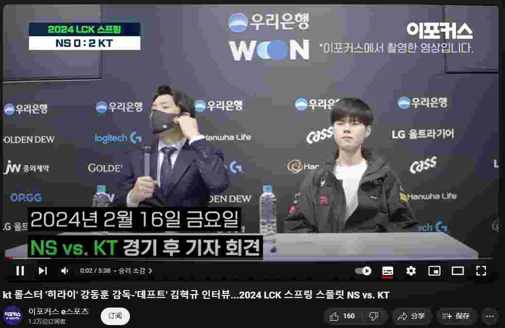 2月16日,2024LCK春季赛常规赛上,KT以2比0击败NS,赛后监督Hirai和下路Deft接受了媒体的群访: