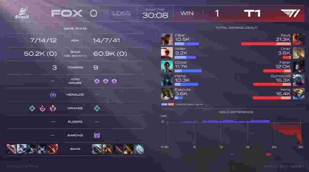 2月18日,2024LCK春季赛常规赛,FOX对阵T1的第一局比赛中,T1辅助Keria掏出黑科技EZ辅助打线,虽然前期下路遭到Willer盲僧针对,但是在T1依靠上单Zeus的带队依旧拿下胜利,赛后结算面板中,Keria的辅助EZ伤害高达16.4k,比Gumayusi的维鲁斯还要高出0.1k