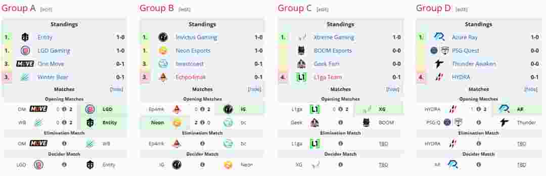在最后一轮比赛开战前,具体积分榜如下,四支CN战队领跑各自小组: