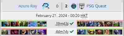 不过值得一提的是,于2月21日凌晨开战的AR对阵PSG.Quest中,AR战队状态不佳0-2不敌PSG.Quest,吞下CN战队首败: