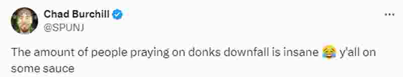 Chad Burchill | SPUNJ在社媒写道:“祈祷donk垮台的人数令人震惊(笑哭)你们都喝醉了。”