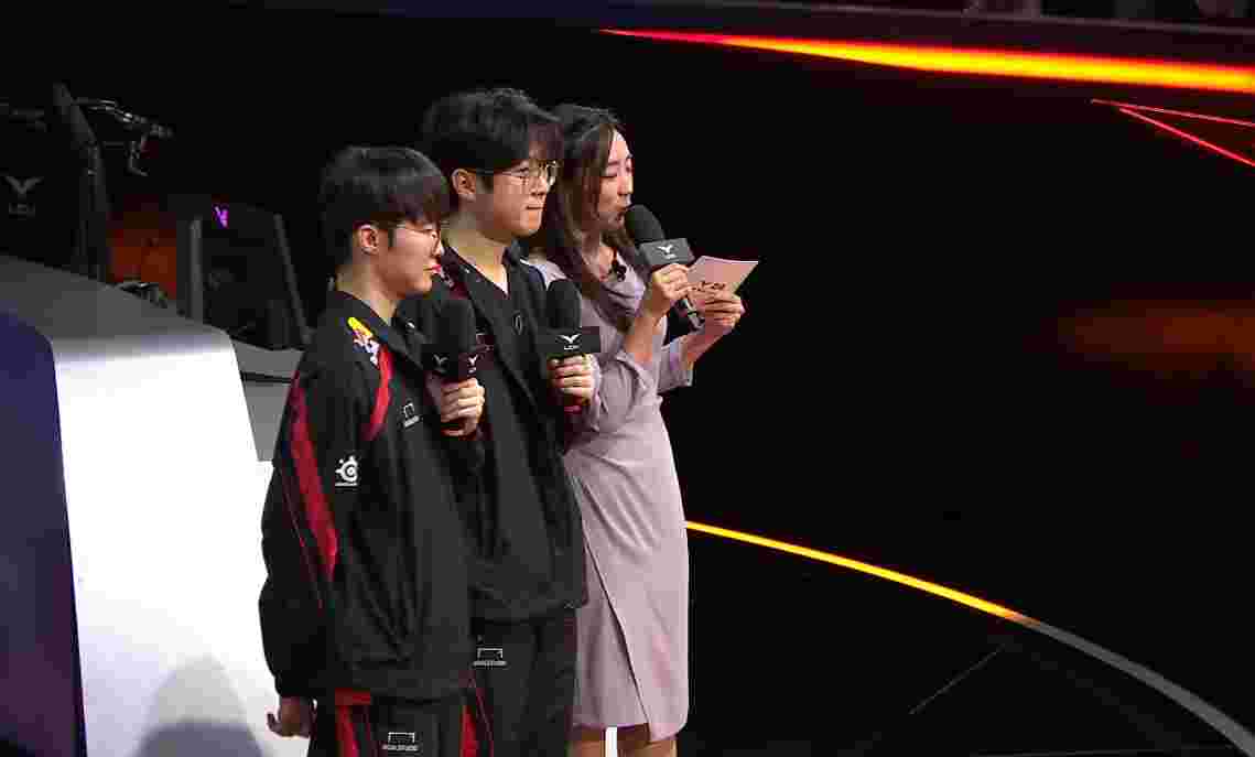 在昨日LCK,T1 2:1战胜NS,拿到八连胜,赛后Faker、Zeus接受了韩文流女主持人的采访,内容如下: