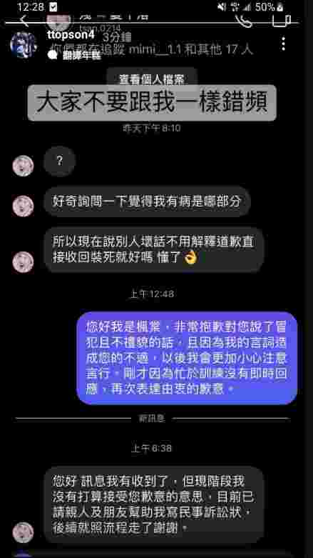 该网红之后反问“好奇询问一下,觉得我有病是哪部分?”不料Maple见状后随即将消息撤回,她也气得开呛“所以现在说别人坏话不用解释、道歉,直接撤回消息装死就好吗?懂了”