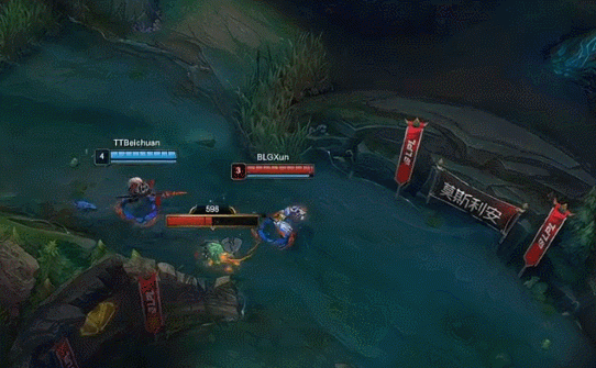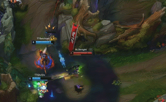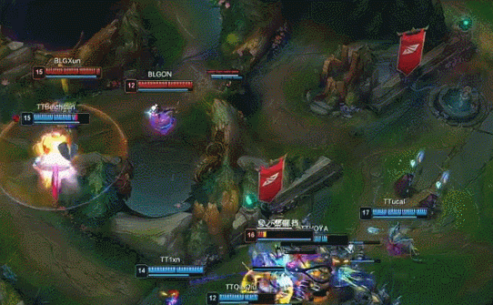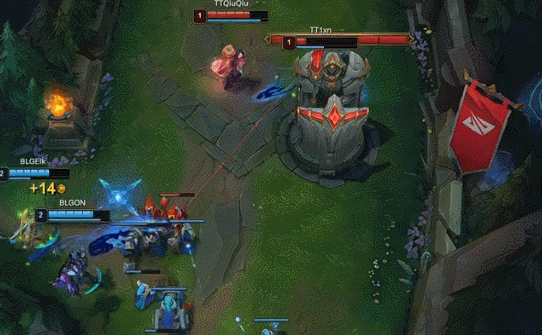 【14:47】赵信收掉两条巢虫,河道蔚被大头E晕,沙皇收掉人头。巢虫比为TT4-2BLG。随后TT中路放出先锋撞掉BLG一塔,经济小领先1k。