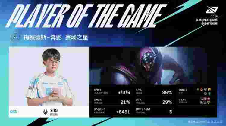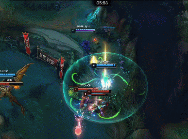 【6:01】妮蔻来下路支援直接绕后开大R到TT三人,赵信残血向上撤退,卢锡安米利欧没闪被秒,贾克斯与卡莉丝塔各拿一个人头,BLG打出0换2收掉小龙。