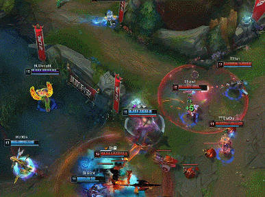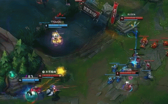 【18:30】中路蔚锁头韦鲁斯,阿卡丽跟上将其秒掉,大头利用防御塔与阿卡丽互换,TT中上野中路支援到位,BLG向后拉扯,双方拉开。