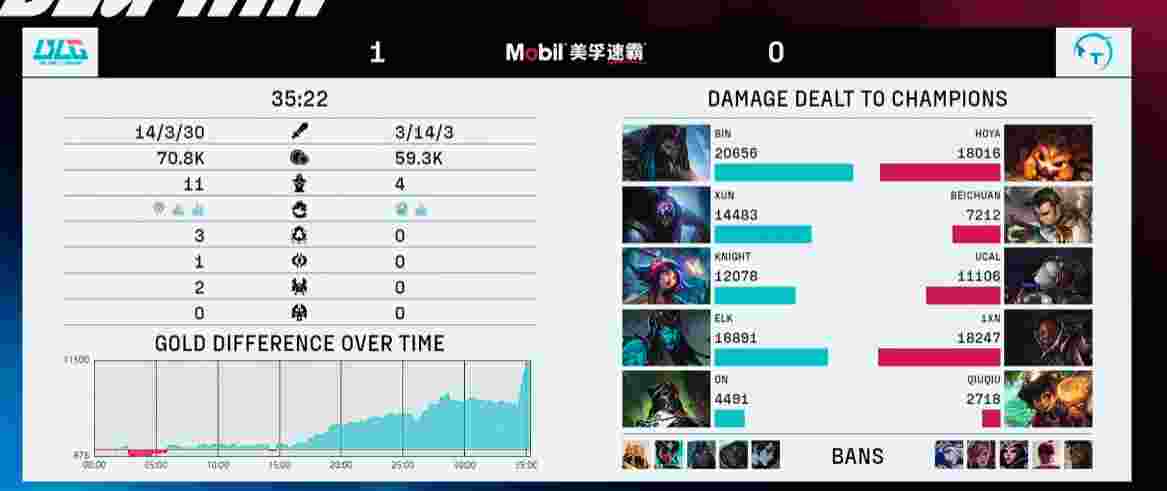蓝色方BLG:Bin乌迪尔、Xun贾克斯、knight妮蔻、Elk卡莉丝塔、ON烈娜塔
