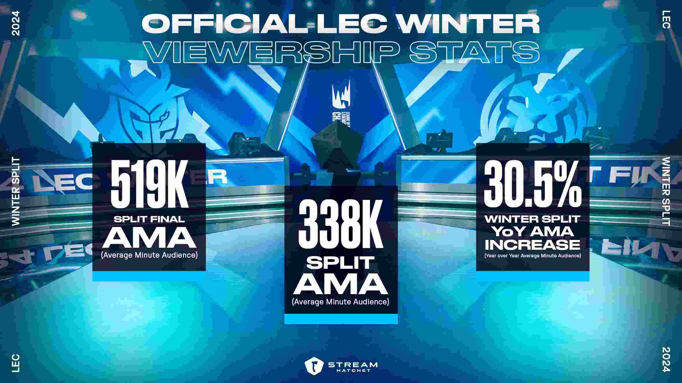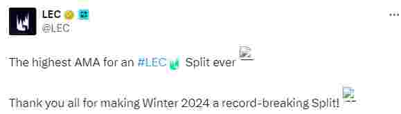 2月27日,LEC赛区官推发文表示,2024LEC冬季赛创下了赛区每分钟观看人数历史新高: