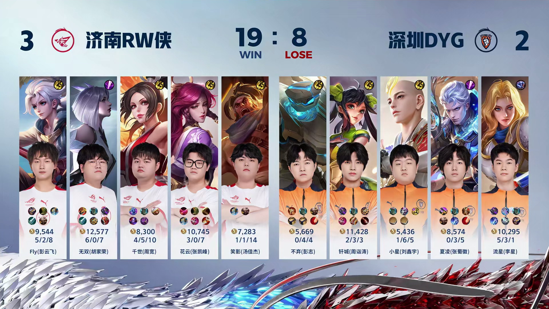 【深圳DYG 2:3 济南RW侠】济南RW侠-王者荣耀 拿下第五局比赛!