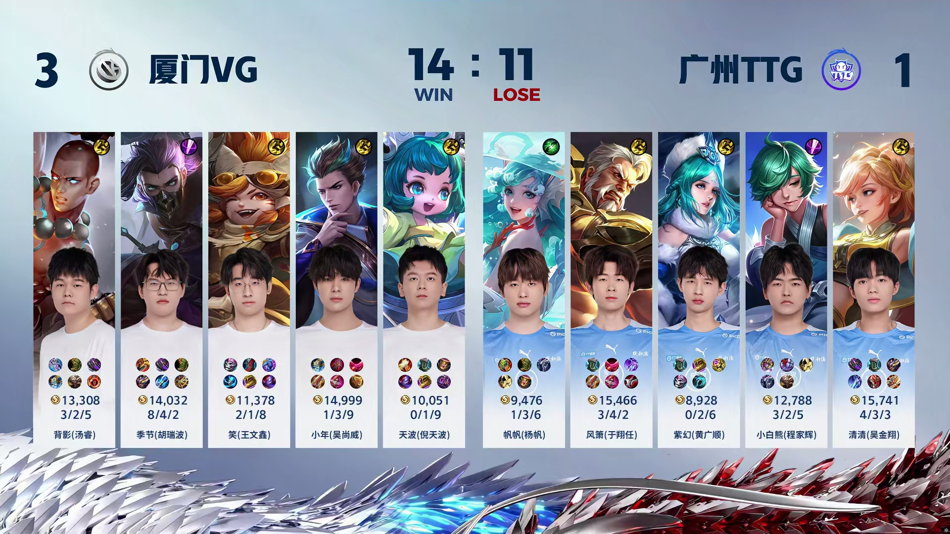【厦门VG 3:1 广州TTG】厦门VG王者荣耀 拿下本场比赛,成功创造队史,首次晋级S组!