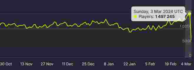 先前游戏的在线人数记录是在去年9月28日创造的(当天也正是CS新版本发布日期),当时数字为1471730人。之后游戏的在线人数经历了一段时间的下滑。