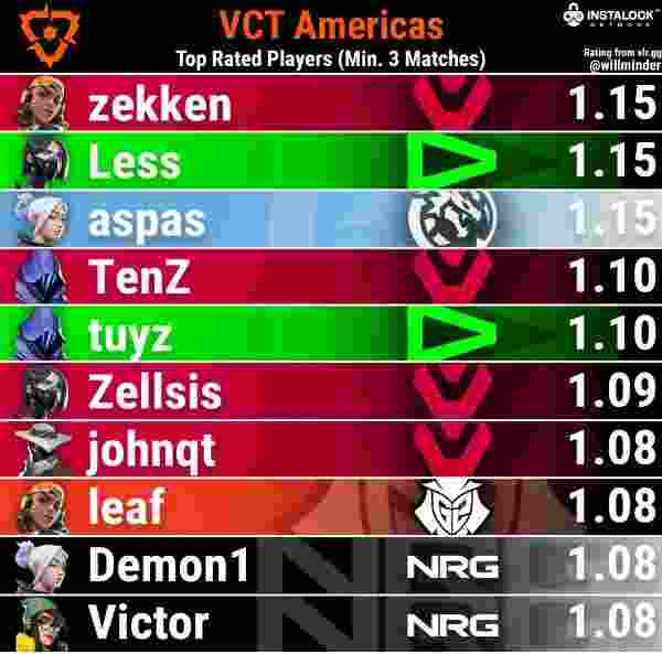 随着北美最强战队SEN力克美洲豪强LOUD取得VCT 美洲赛区启点赛的冠军宝座,本次美洲启点赛的rating排行榜也正式出炉,其中SEN四人强势上榜: