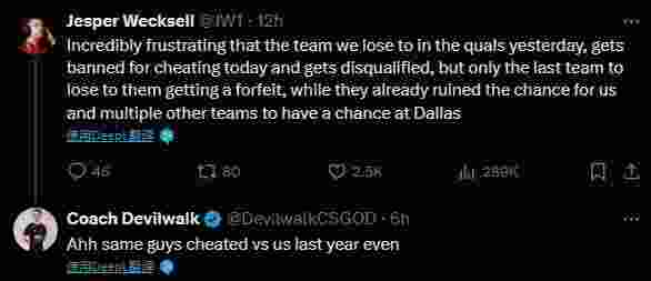 JW:“真的抽象,我们昨天输给的那支队伍今天因为作弊被取消了比赛资格,但只有最后一支输给他们的队伍被改成了对手弃权。但在此之前这支作弊队已经毁了我们好几支队伍了。”