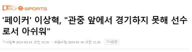 3月13日,2024LCK春季赛常规赛,T1以2比0击败DK,赛后韩媒DailyEsports发布了对T1中单选手Faker的采访: