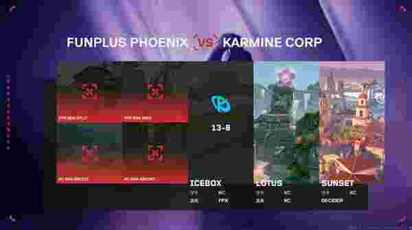 来到长枪局之后的KC再次掌管了比赛,FPX在细节上的缺失导致他们被KC率先拿下了赛点。虽然Life拿下了五杀帮助队伍守下了一个赛点,但是随后KC凭借Magnum的一个四杀杀死了比赛。KC以13-8收下了图一的胜利。