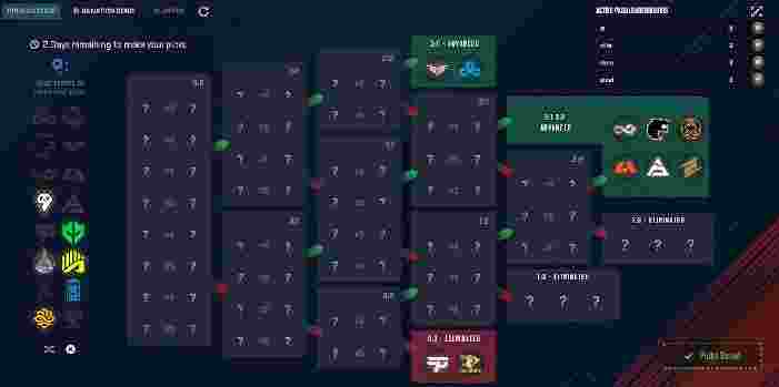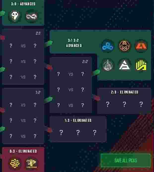 在揭幕赛和淘汰赛阶段,玩家需要进行10次预测:两支3-0出线的队伍、两支0-3被淘汰的队伍、6支3-1或3-2晋级的队伍。以下为目前部分职业选手分享的个人竞猜。