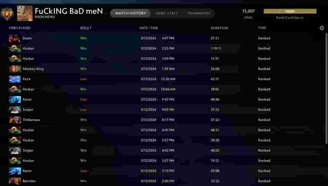 这一壮举发生在去年12月,当时 23savage 成为了第一个达到13000MMR的选手。此后,Pure、Watson、JaCkky、Quinn、Satanic(也以 King 的ID 知名)、Kiritych、9Class 和 Kordan 纷纷达到了这一壮举,将自己的游戏水平推向了一个新的高度。Malr1ne 最终成为了第十位达到这一分数的选手。