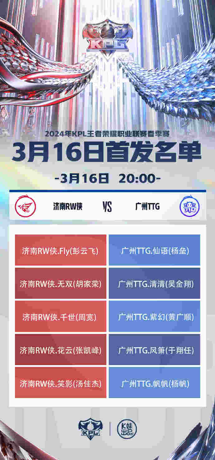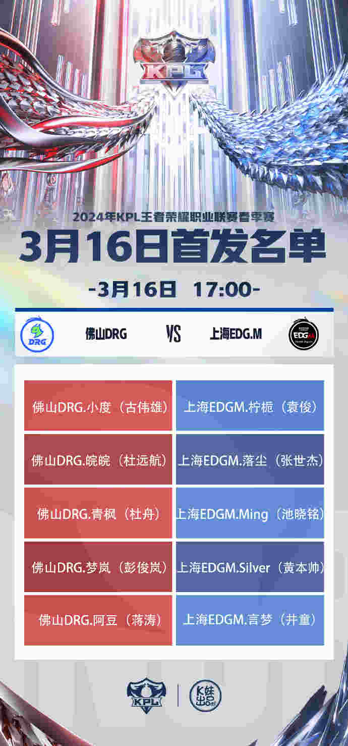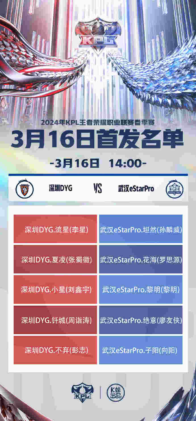 3月16日,KPL官博发布常规赛第二轮W2D4【首发名单】