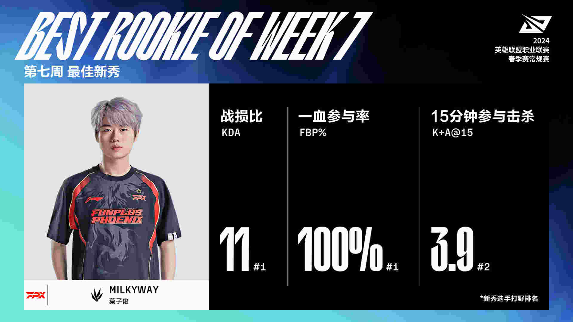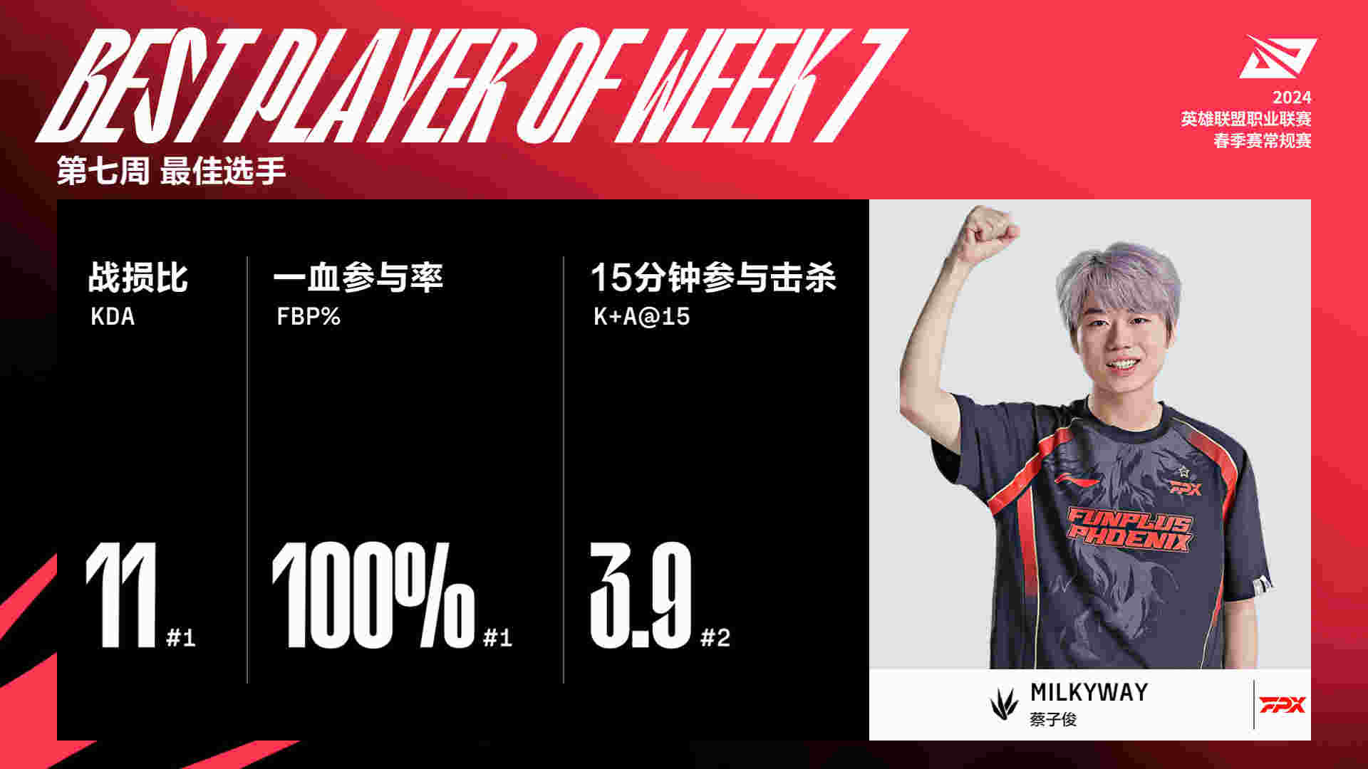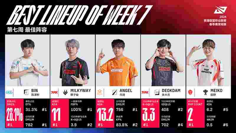 3月18日,英雄联盟赛事发布2024LPL春季赛第七周最佳阵容: