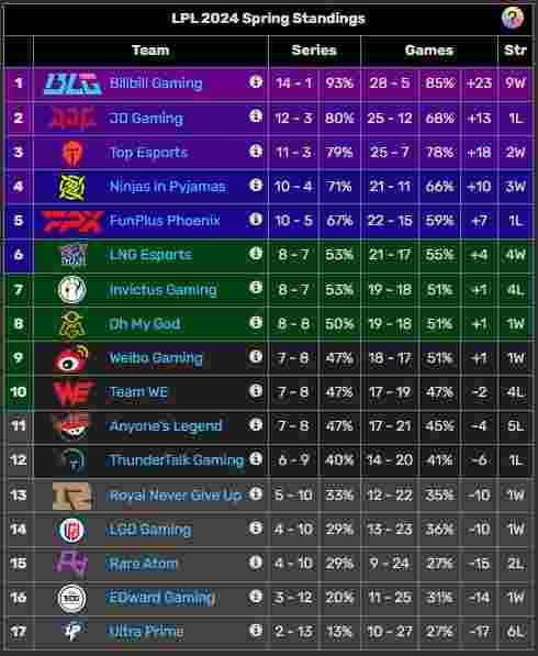 3月23日,2024LPL春季赛常规赛LNG以2比0击败WE,第二场比赛LNG前期在大逆风的情况下连续抓到WE上中野赏金人头,凭借龙魂翻盘成功,挺进季后赛:
