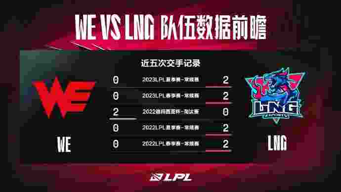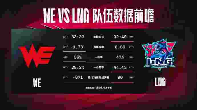3月23日,2024LPL春季赛常规赛迎来WE对阵LNG的比赛,赛前英雄联盟赛事数据发布了数据前瞻: