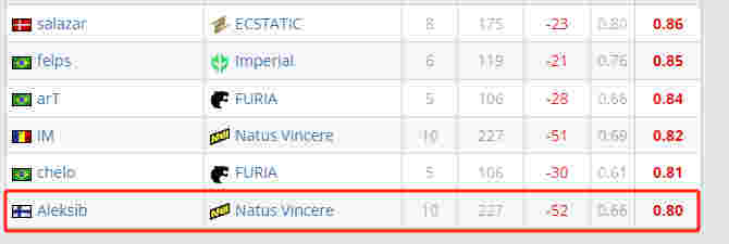 Aleksib在所有十张地图中仅仅打出0.80的Rating,不仅在全部所有参赛选手中排名倒数第一,同时也是个人职业生涯线下赛表现最差的一次。此前他在代表Ninjas in Pyjamas参加2023年IEM卡托维兹期间,打出过0.83的超低Rating,但这一次他又刷新了自己职业生涯的新低。