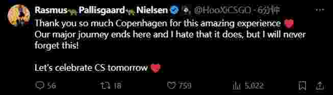 Rasmus Nielsen | HooXi:感谢这次在哥本哈根的绝妙体验,我们的Major之旅到此为止。我讨厌以这样的方式结束比赛,但我永远不会忘记这段经历。