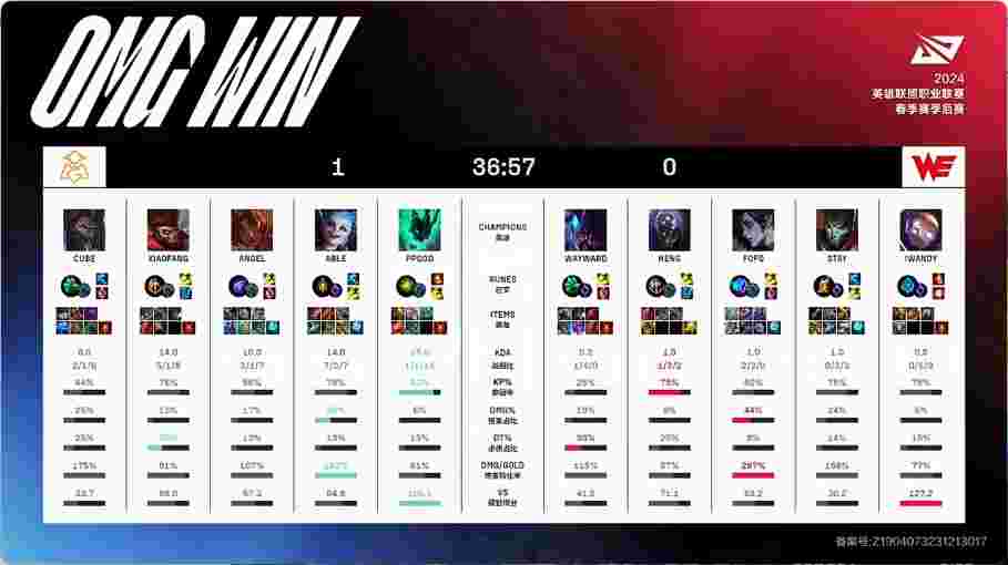 北京时间3月31日,2024年LPL春季赛季后赛第一轮第一场,由OMG对阵WE。