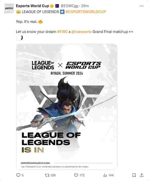 近日,沙特电竞世界杯官推宣布:英雄联盟和云顶之弈将确定入选2024夏季进行的沙特电竞世界杯项目。