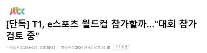 4月1日,韩媒JTBC发布文章表示,T1俱乐部已经收到来自利雅得电竞世界杯的邀请: