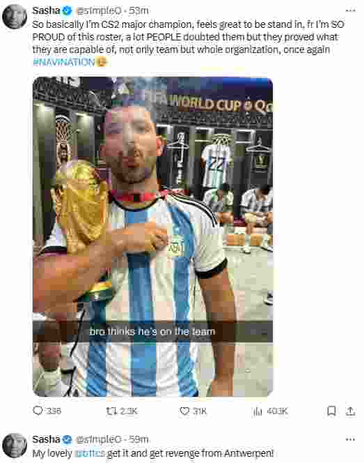 Natus Vincere的第二个Major冠军。赛后,队内部分选手在个人社媒上表达了自己的心情。