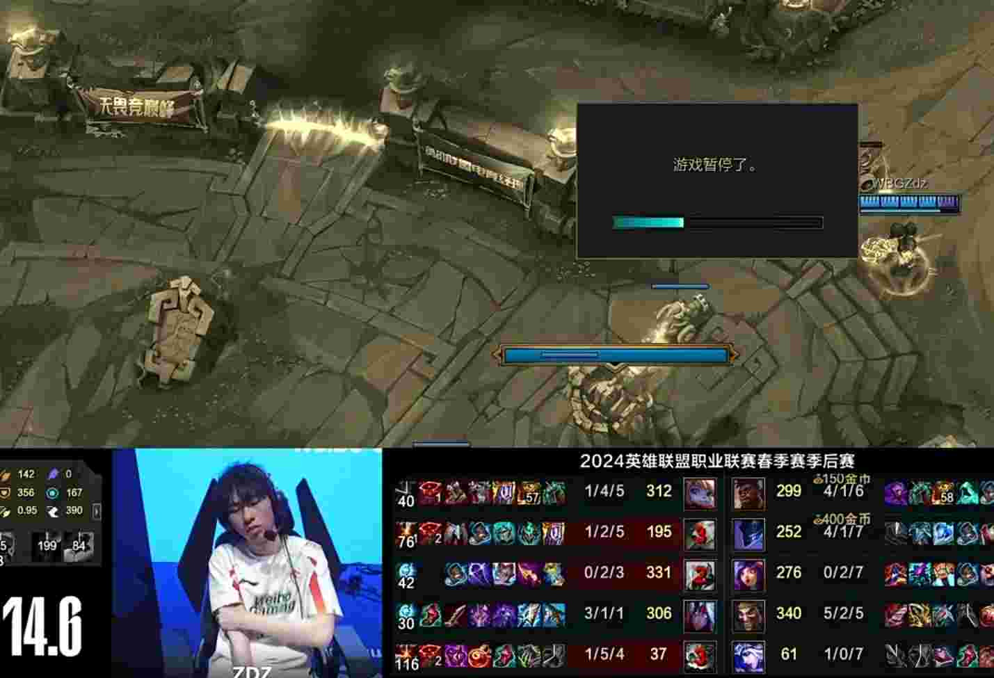 4月1日,2024LPL春季赛季后赛WBG对阵IG第四局比赛上,比赛在30分钟以后出现两次暂停,经解说口播解释为WBG上单选手Zdz和IG上单选手Yskm轮流出现身体不适