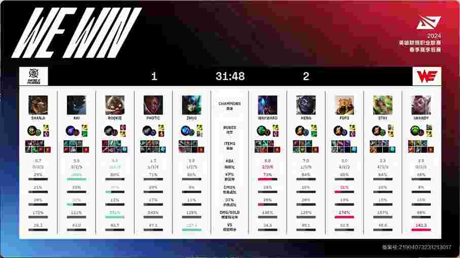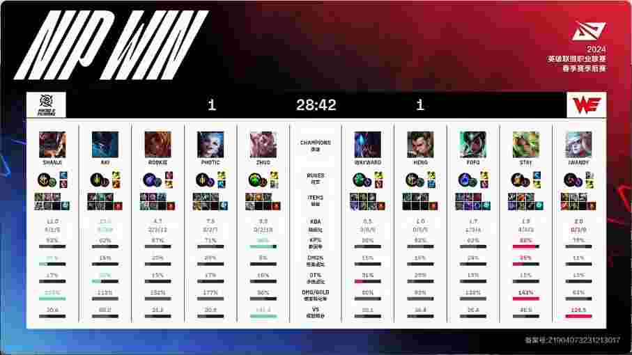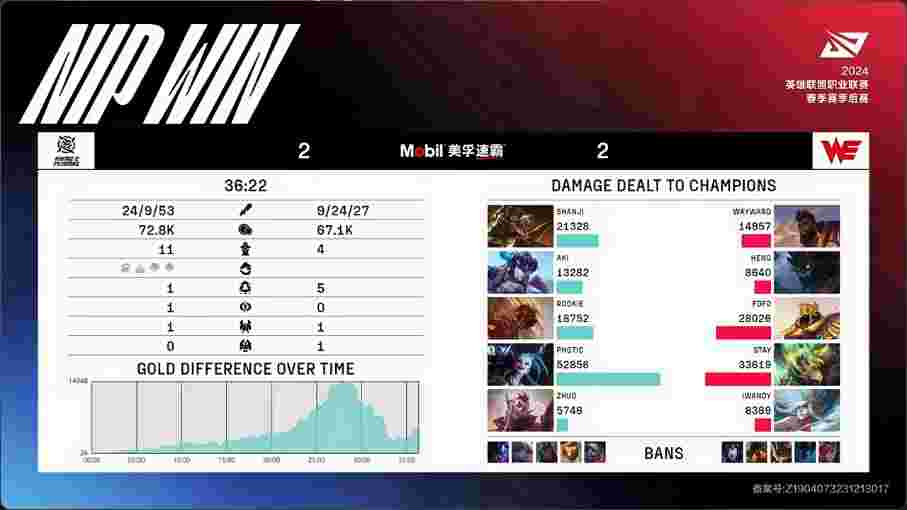 北京时间4月2日,2024年LPL春季赛季后赛第二轮第一场,由NIP对阵WE。