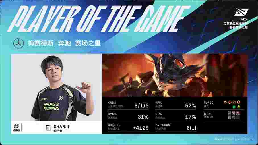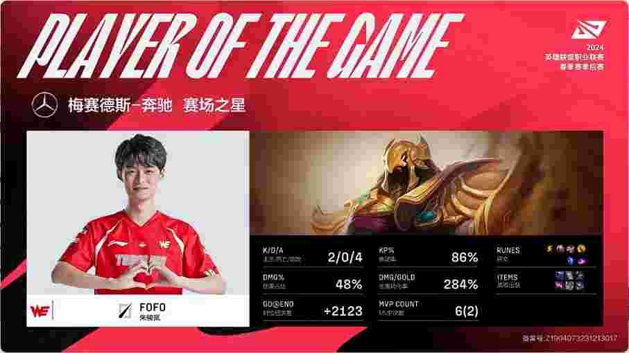 第21分钟,WE在中路抓到机会,雷克塞绕后配合给到压力,洛成功开到卢锡安配合队友成功击杀,泽丽拿到终结人头。